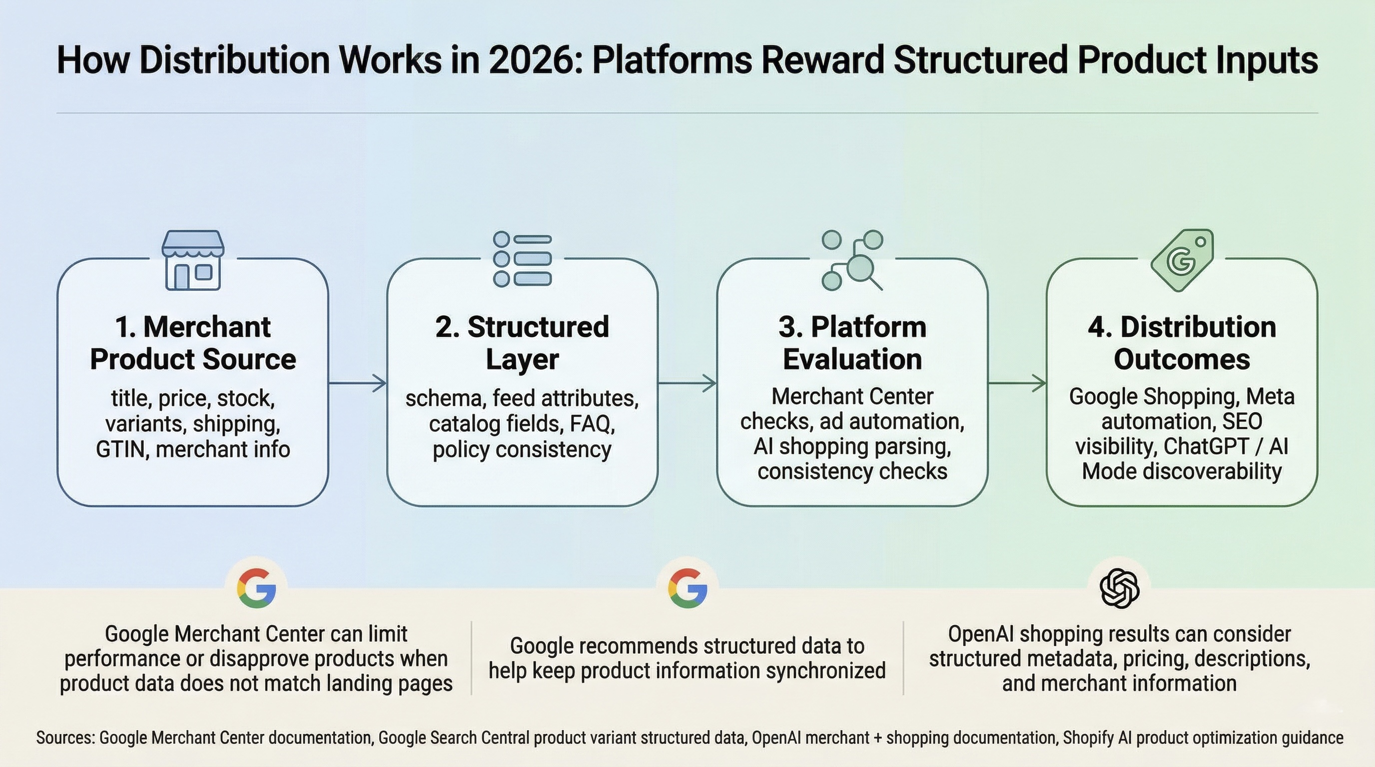 The operating loop is increasingly straightforward: cleaner merchant product inputs feed cleaner structured layers, which lead to better platform evaluation and better distribution outcomes.